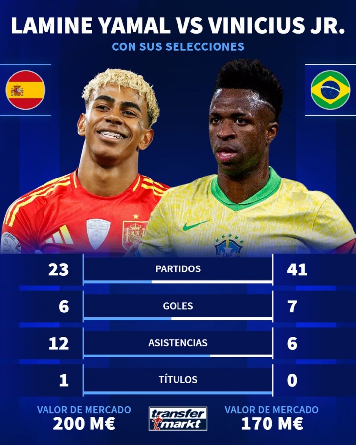 09月09日讯 德转官方今日对比了亚马尔和维尼修斯在各自国家队的数据英超比赛在线观看无插件。