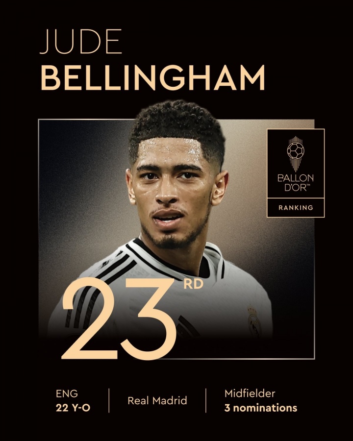9月23日讯 2025年金球奖第23名:贝林厄姆