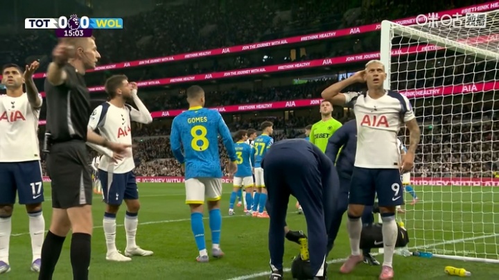 09月28日讯 英超第6轮热刺vs狼队第14分钟。库杜斯顶球被扑至横梁,理查利森与其同时抢点时撞到头部,24直播网起身后看起来有点懵。