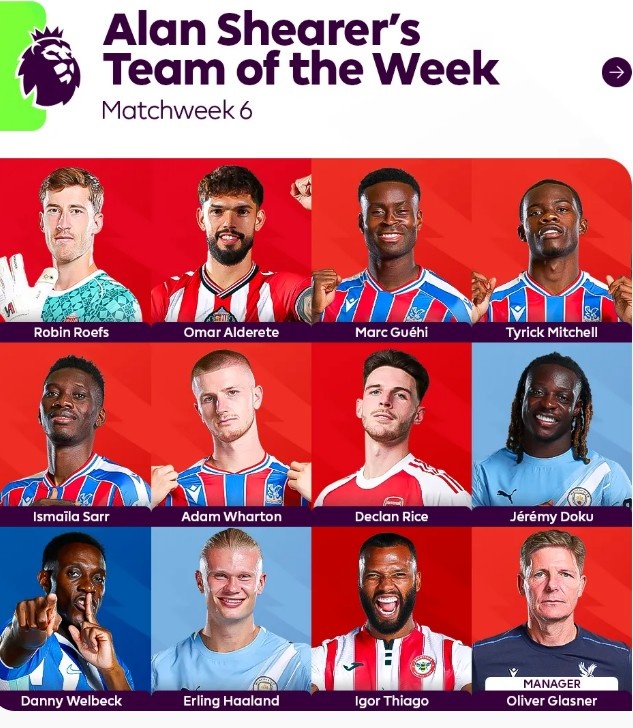 9月30日讯 英超第6轮战罢,名宿阿兰-希勒也评选出本轮最佳阵,英超比赛在线观看无插件其中 哈兰德、赖斯等在列,具体如下: