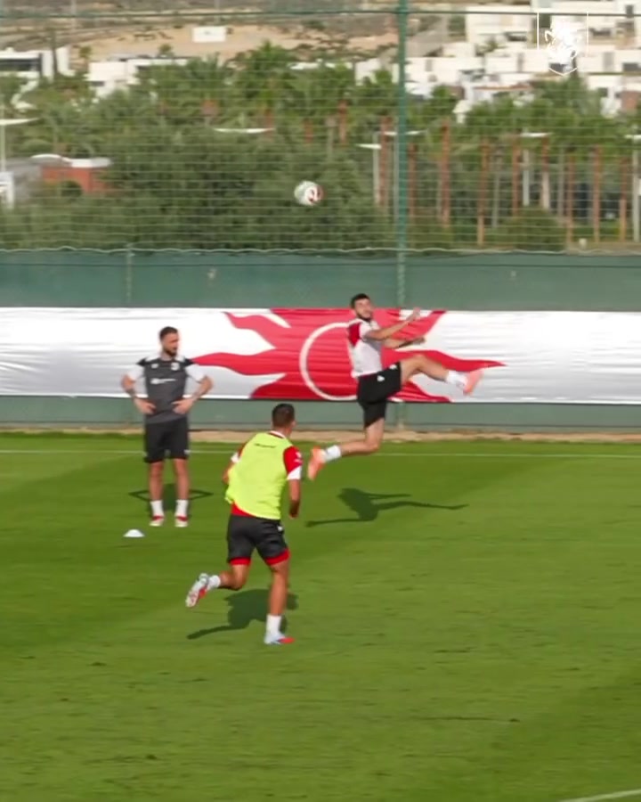 10月10日讯 格鲁吉亚国家队昨日晒出了一段克瓦拉茨赫利亚练习 时停球的照片。