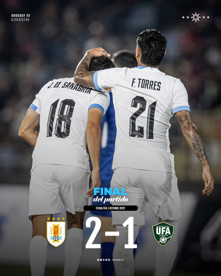 10月13日讯 在刚刚结束的国际友情 赛中,多名主力缺席的乌拉圭2-1战胜乌兹别克斯坦,托雷斯、马努埃尔建功,吉亚扳回一球。乌兹别克斯坦新帅卡纳瓦罗无缘上任2连胜。