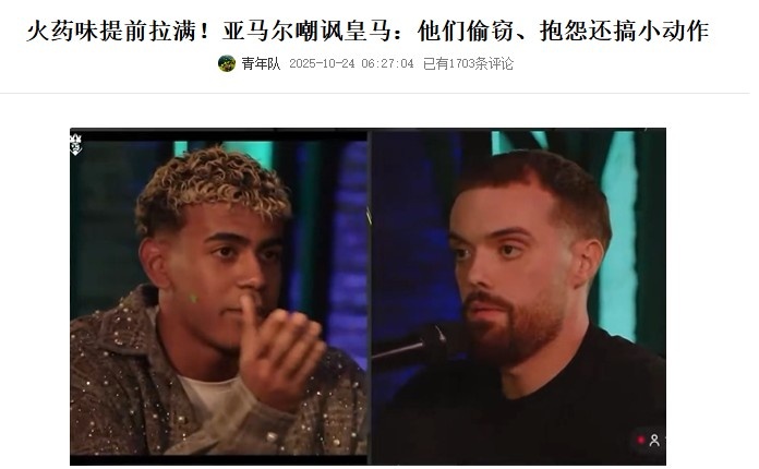 赛前,亚马尔嘲讽皇马:他们偷窃、抱怨还搞小动作,该言论引发皇马方面强烈不满,赛事 开始前已经酝酿不满情绪