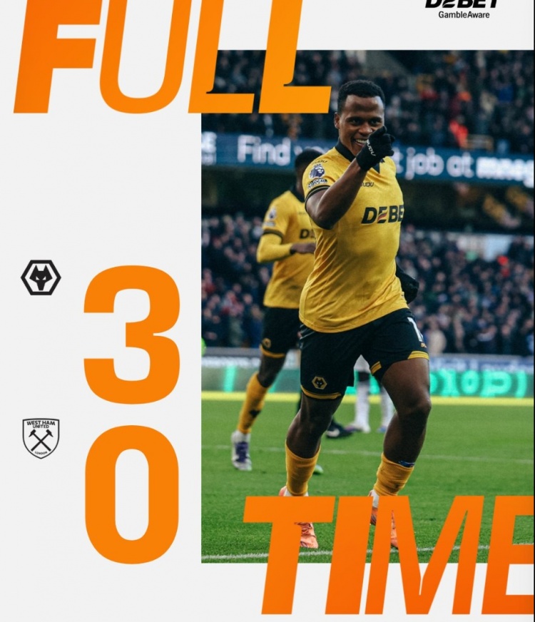 1月4日讯 本轮英超焦点战,狼队主场作战 3-0完胜西汉姆联,取得本赛季职业联赛 首胜。