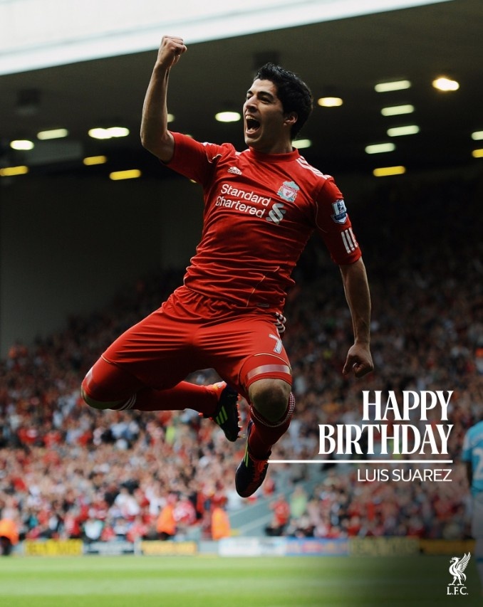 1月24日讯 今天是乌拉圭球星苏亚雷斯39岁生日,利物浦官推也晒出海报为其送上生日祝福。