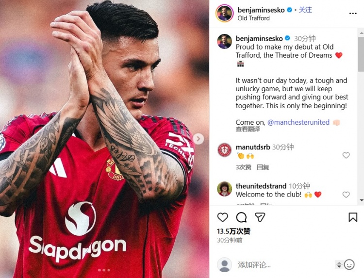 在社交媒体上,塞斯科写道:很荣幸在“梦剧场”老特拉福德上演首秀!这是不属于我们的一天,英超比赛在线观看无插件赛事 很艰难,我们也不走运,但我们会继续努力英超直播在线观看免费观看360,一起奉献出最好的表现。这只是一切的开始!助威 曼联!