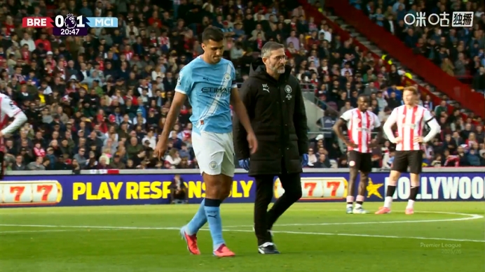 10月05日讯 英超第7轮,曼城客战布伦特福德。20分钟,罗德里无法坚守 ,24直播网被尼科·冈萨雷斯换下。