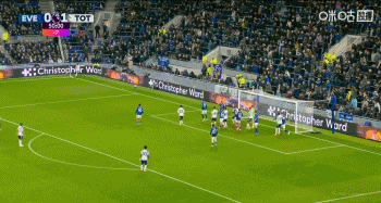 10月27日讯 英超第9轮埃弗顿vs热刺,范德芬半场顶球连进两球英超在线直播吧,热刺2-0领跑 埃弗顿。