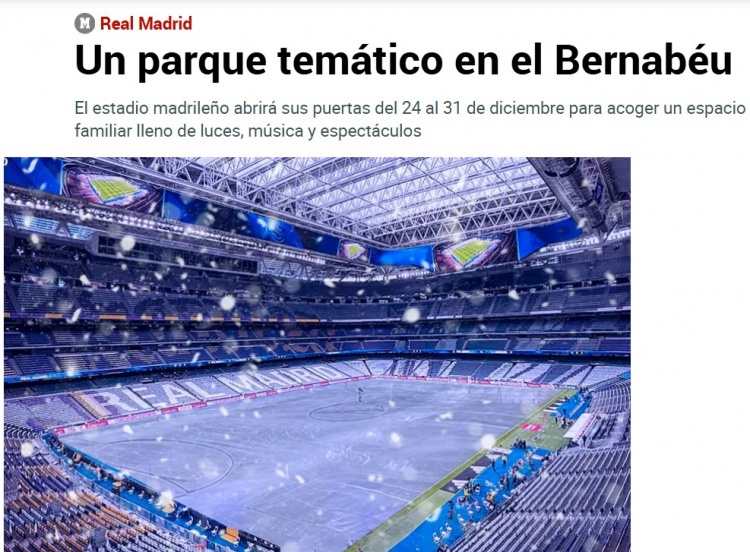 10月31日讯 据《马卡报》报道,皇马的伯纳乌运动活动 场 将在今年圣诞节期间转变为一个大型主题公园。