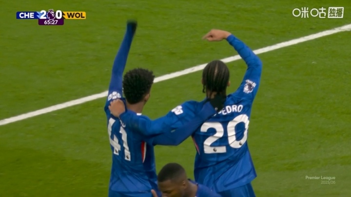 英超第11轮,切尔西3-0狼队,英超比赛在线观看无插件两位巴西国脚佩德罗与埃斯特旺庆祝